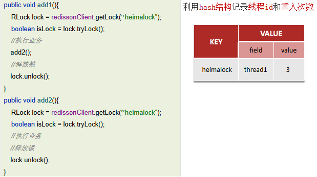 ❒ 所谓锁重入,就是同一个key多次加锁,能否成功? ✔ 普通结构:{key:value} ✔ redisson结构:{key: 线程id + value} ✔ 同一个线程是可以锁重入的,每次加锁成功,锁次数都会+1,释放时-1