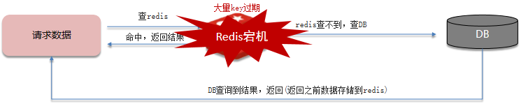 ✔ 缓存雪崩是指在同一时段大量的缓存key同时失效。 ✔ redis服务宕机,导致大量请求到达数据库,带来巨大压力。